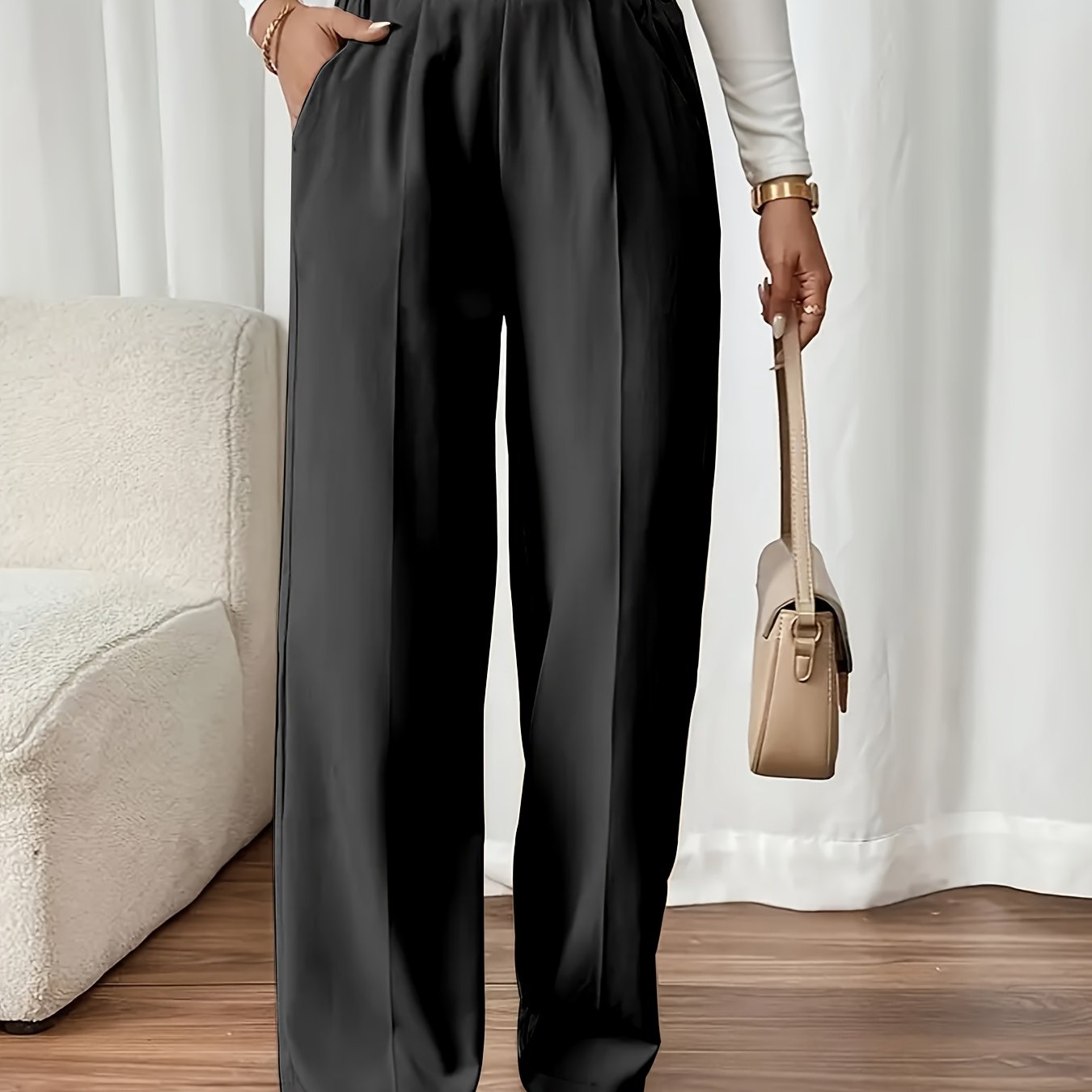 TEMU 여성용 우아한 레그 팬츠 - 신축성 있고 비치는 롱 트라우저, 모든 계절에 정장 및 캐주얼 웨어에 적합, 데일리, 사무실 및 파티에 완벽 - 스타일리시한 외관의 간편한 관리 여성용 팬츠