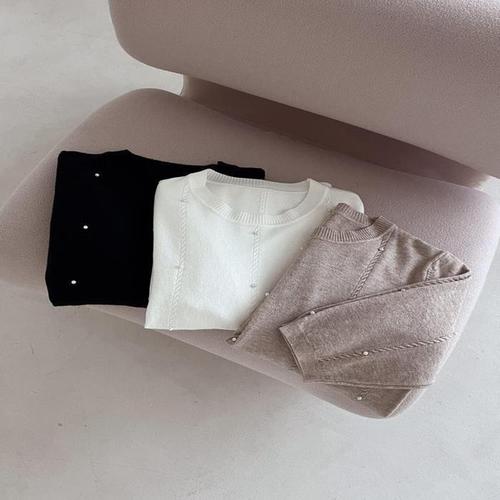 ★3종세트★레이스 진주 포인트 니트 긴팔티 3종세트 (A타입)