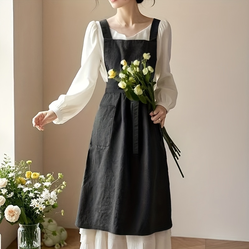 TEMU 일본식 한국식 여성용 비브 스타일 롱타이 앞치마, 우아한 가드닝 앞치마, 주방, 베이킹, 플로럴 아트, 매니큐어, 아트, 바리스타, 작업복에 적합