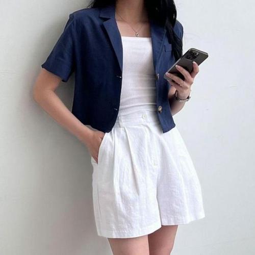 [셀러허브_여성트랜드패션]디몬드 반팔 자켓 여름 마자켓 면마 여성