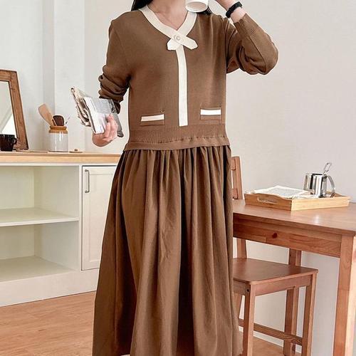 [다잇템]여자 후레아 진주리본 FW 투피스느낌 롱원피스_3 (27367860A)