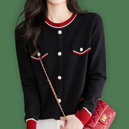 [모노무드]LMO 우먼데일리 S/S 가을철 진주 장식 라운드칼라 울탑 블랙컬러