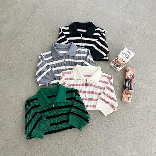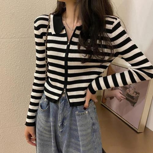 [오너클랜]인기상품 여성용 스트라이프 지퍼 집업 카라 반팔 티셔츠 여름용 나시 스타일 [WFLLKCN_260305]