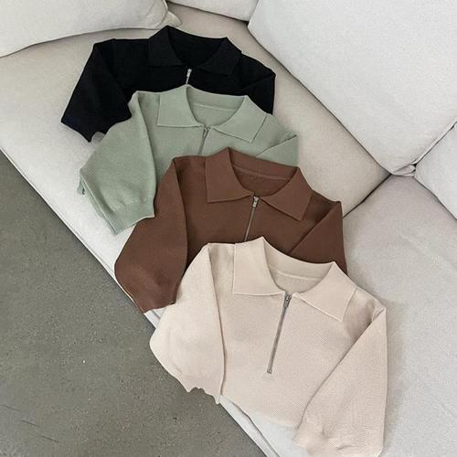 [다잇템]여자 단가라 반소매 카라넥 집업 피셔맨 티셔츠 (10582900A)