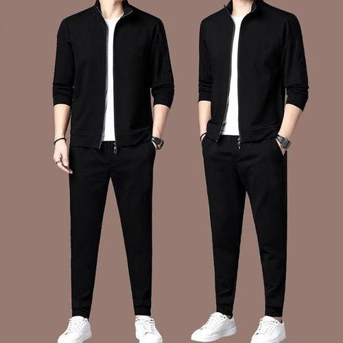 TIMEPURE 남자 트렌디 스탠드 칼라 지퍼 자켓 바지 투피스 세트 남성 패션의 핵심 아이템 남성 미니멀 트레이닝복 데일리룩 캐주얼 컴포트 프리미엄 스웻 셋업