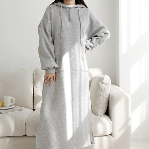 [GGPX]반집업 후드 절개 플레어 롱 원피스 (GODOW023D)