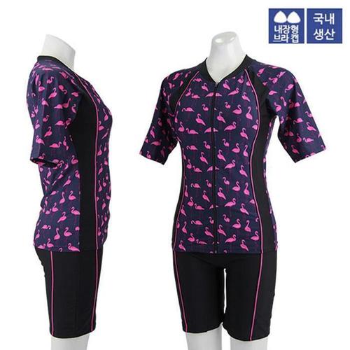 제테스 여성 아쿠아 집업 반팔 3부 반신 실내수영복 L_4A935