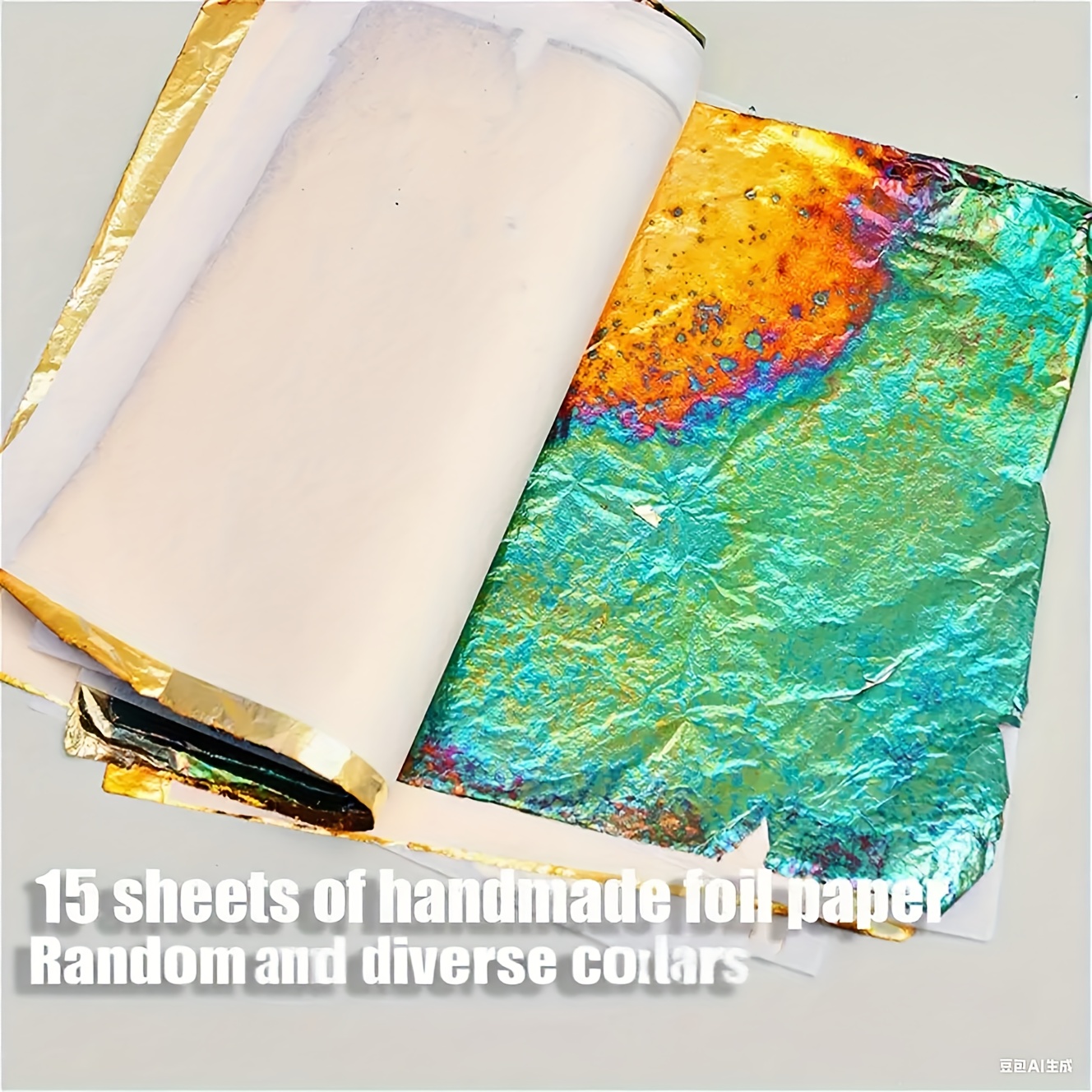 TEMU 10/15장 수제 버닝 구리 호일 - DIY 공예, 페인팅, 네일 아트, 가구 도금용 무지개빛 메탈릭 리프 | 전통 공예 재료