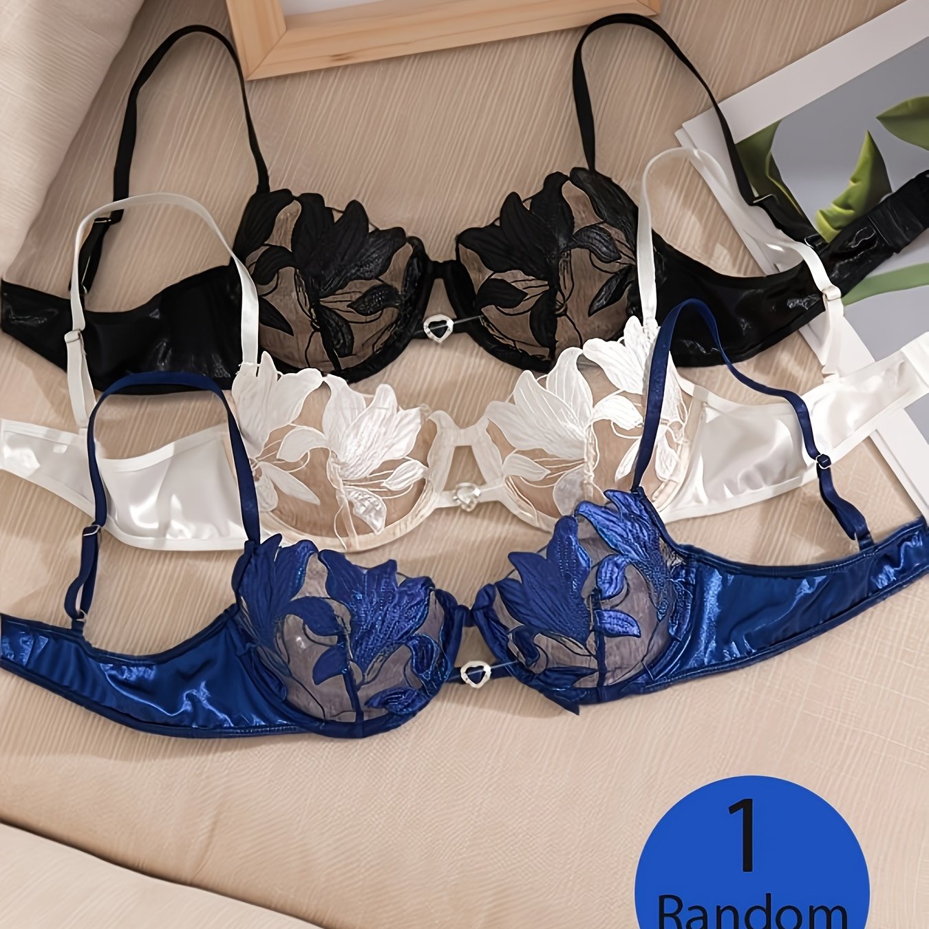 TEMU 섹시한 데일리 란제리 브라 1개 랜덤, 아름다운 백합꽃 자수가 특징인 단층 비침 있는 언더와이어 브라, 여성적인 매력을 대담하게 보여주는 패셔너블하고 우아한 브랄렛