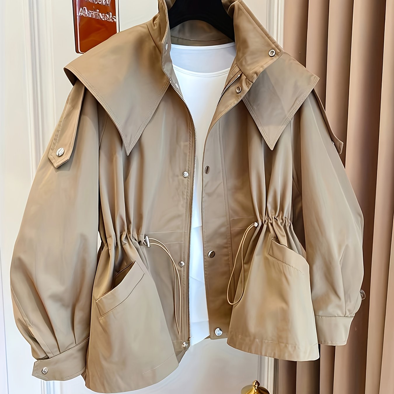 TEMU 신상 여성용 , 편안하고 다재다능한 디자인, 드로스트링 후드 및 봄/가을용 캐주얼 칼라 특징