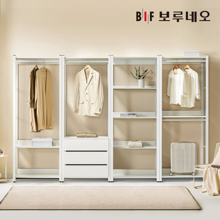보루네오 BIF 아이든 시스템 행거 철제 드레스룸 3200 R 3단서랍 세트