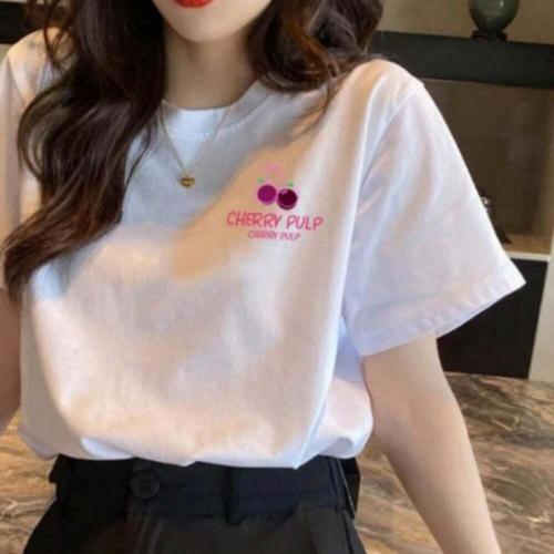 [오너클랜]인기상품 여성용 라운드넥 면 반팔 티 체리 프린트 여름 데일리웨어 [WFLKWZ2_260304]