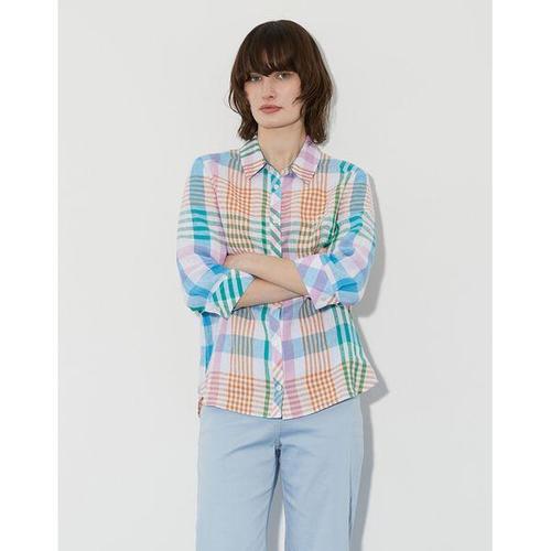 [베네통]자수 커프스 린넨 체크 블라우스_BABLA2631