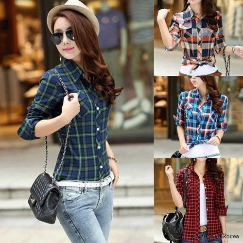[오너클랜]인기상품 여성용 체크 패턴 코튼 셔츠 간절기 레이어드 캐주얼 남방 블라우스 [WFLLKDY_260305]