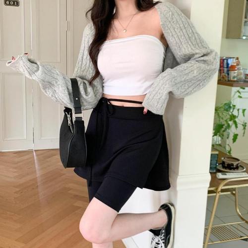 |KMK15C7|여성 스판 사이드슬릿 벨트 치마바지 레깅스