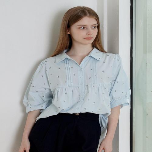 [위시드]플라워 패턴 카라넥 버튼업 반팔 블라우스 (WICBBL045)