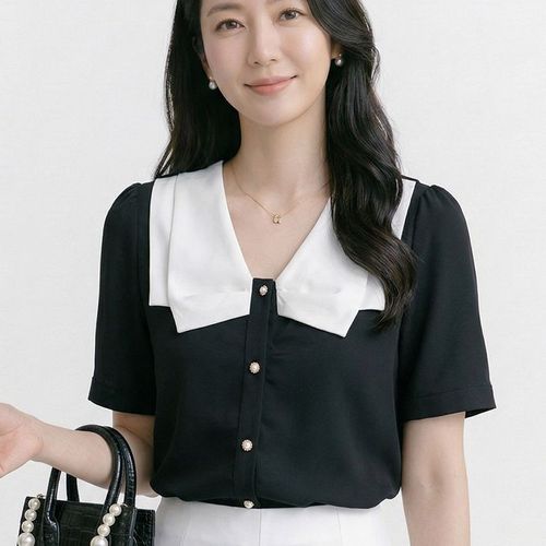 [옷은날개] 찰랑 카라 반팔 블라우스 여리여리 심플 데이트룩