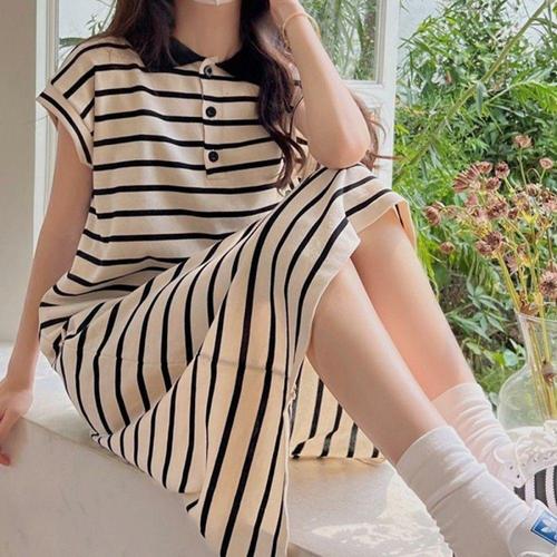 미니원피스 꾸안 여름 카라 데일리룩 스트라이프 반팔
