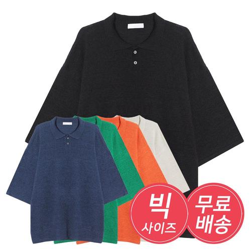 남자 여름 오버핏 카라넥 반팔 니트티셔츠 AC-KNH-Q015-오렌지