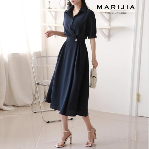 [마리지아][인기][MARIJIA] 페미닌 솔리드 카라 원피스_MOPA22006