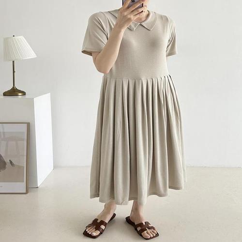 [오너클랜]인기상품 여성용 카라 반팔 미디 원피스 봄여름 데일리 티셔츠 원피스 [WFLKXGZ_260304]