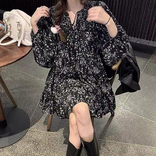 [오너클랜]인기상품 여성 봄 여름 플라워 캉캉 퍼프 쉬폰 블랙 미니 원피스 [WFLI1R1_260227]