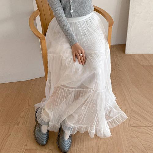 [유야]여성 프릴 캉캉 밴딩 롱 스커트 치마 -FSK0214- 봄 여름