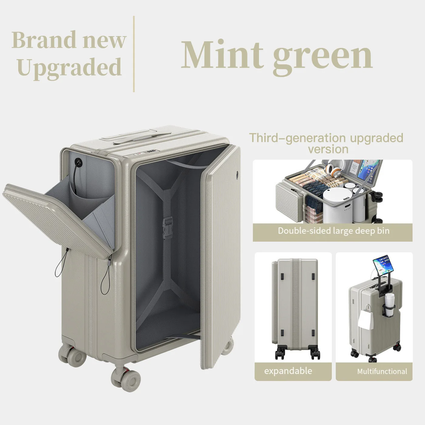 측면 개방형 여행 가방 2025 신형 대용량 캐리어 다기능 트롤리 가방 확장형 20인치 기내용 가방