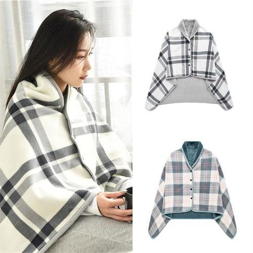 [다잇템]여자 겨울캠핑 격자 스냅 무릎담요 플리스 숄 (9325082A)