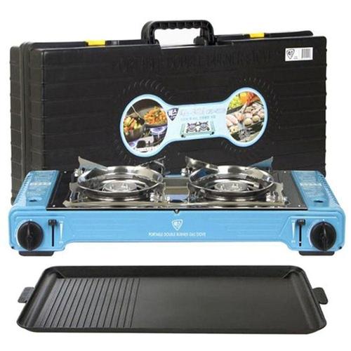 2구 멀티 휴대용 가스렌지 이중 스토브 야외 캠핑 조리기구 불판 케이스 포함