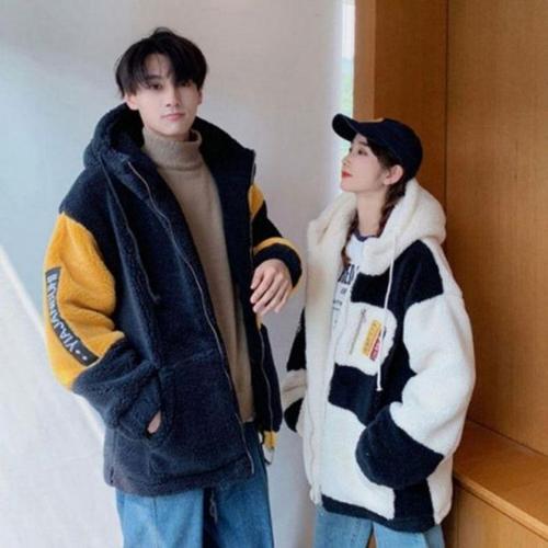 JUSTFEELING 커플룩 남여공용 뽀글이자켓 하이넥 램스울코트 루즈핏 바람막이 보온 방한 외출복 가을겨울 후리스코트 점퍼 M-3XL