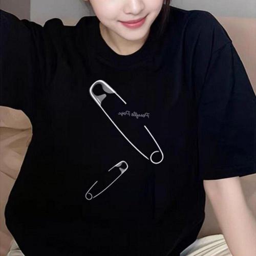 여성 티셔츠 만화 프린트 재미있는 커플 달콤한 반팔 O넥 루즈핏 Y2K 하라주쿠 탑 여성 캐주얼 티셔츠
