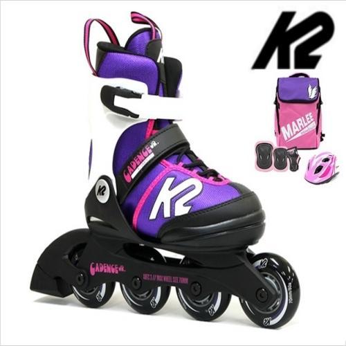 K2 케이던스핑크퍼플 아동인라인 5단계 사이즈조절 가방+보호대+헬멧[풀]