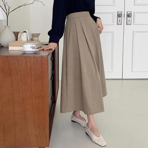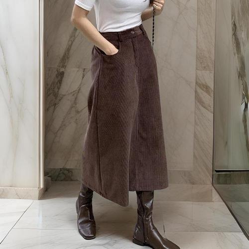 [다잇템]여자 앞트임 골덴 코듀로이 H라인 밴딩 겨울 롱 스커트 (11581913A)