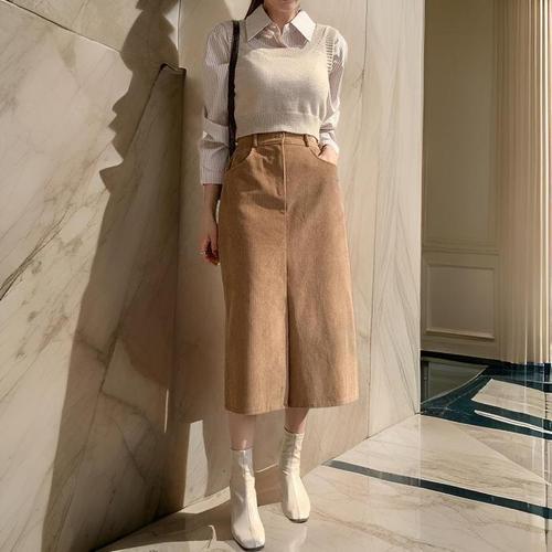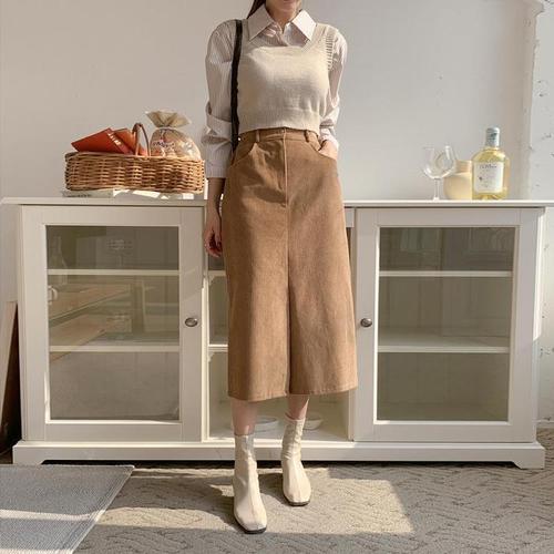 [다잇템]여자 일자 골덴 코듀로이 롱 슬릿 스커트 (11638051A)