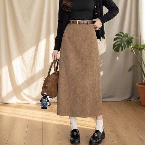 [옷자락]여성 하이웨이스트 코듀로이 롱스커트 벨트포함