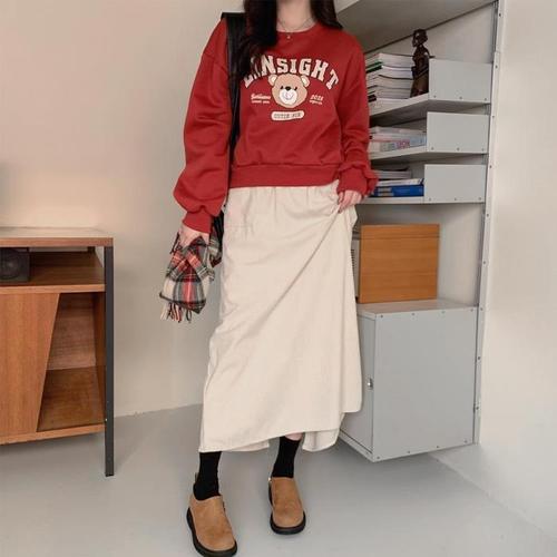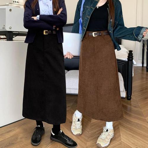 여성 윈터 스커트 코듀로이 롱 치마 벨트 포함