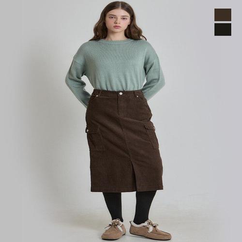 [원더플레이스][더블유스탠다드(W STANDARD)] 코듀로이 카고 롱 스커트