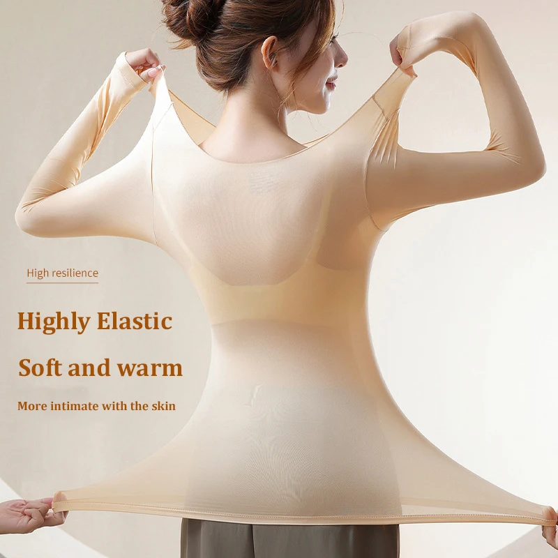 여성용 초박형 무봉제 보온 속옷 고탄력 따뜻한 조끼 슬림 핏 탑 캐주얼 긴팔 가벼운 잠옷
