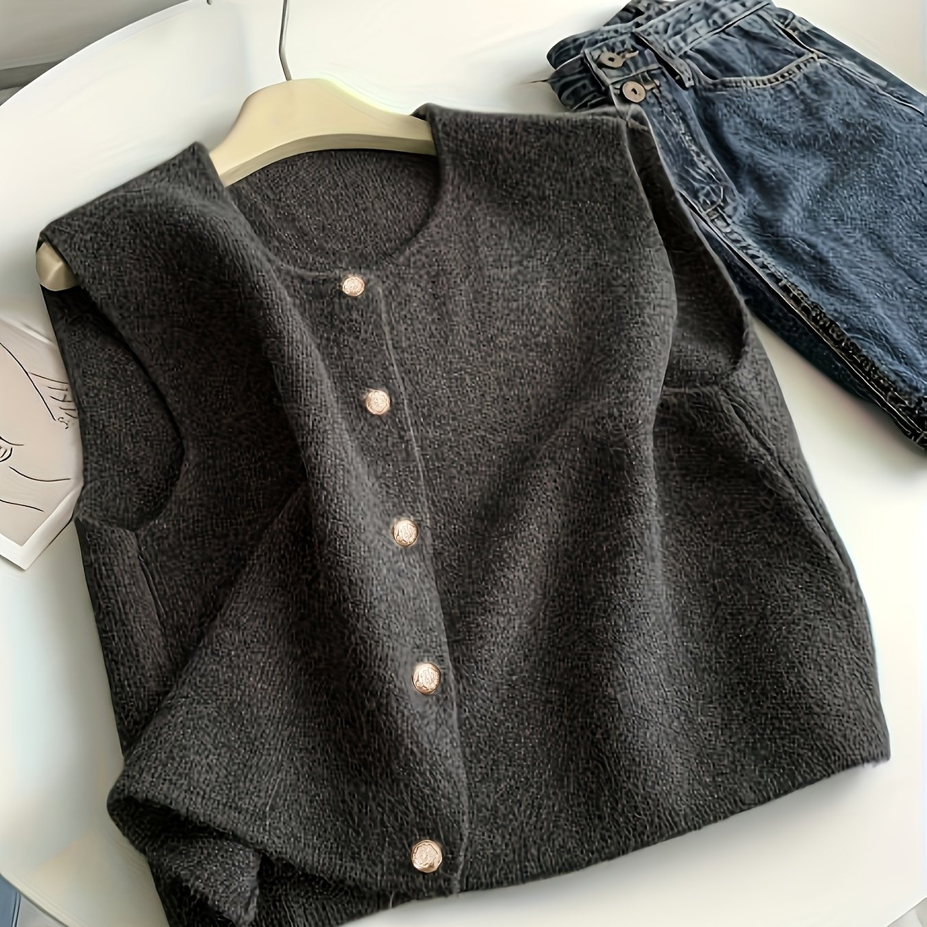 TEMU 여성용 봄 여름 가을 스웨터 캐주얼 패션 심플 버튼 그레이 베스트