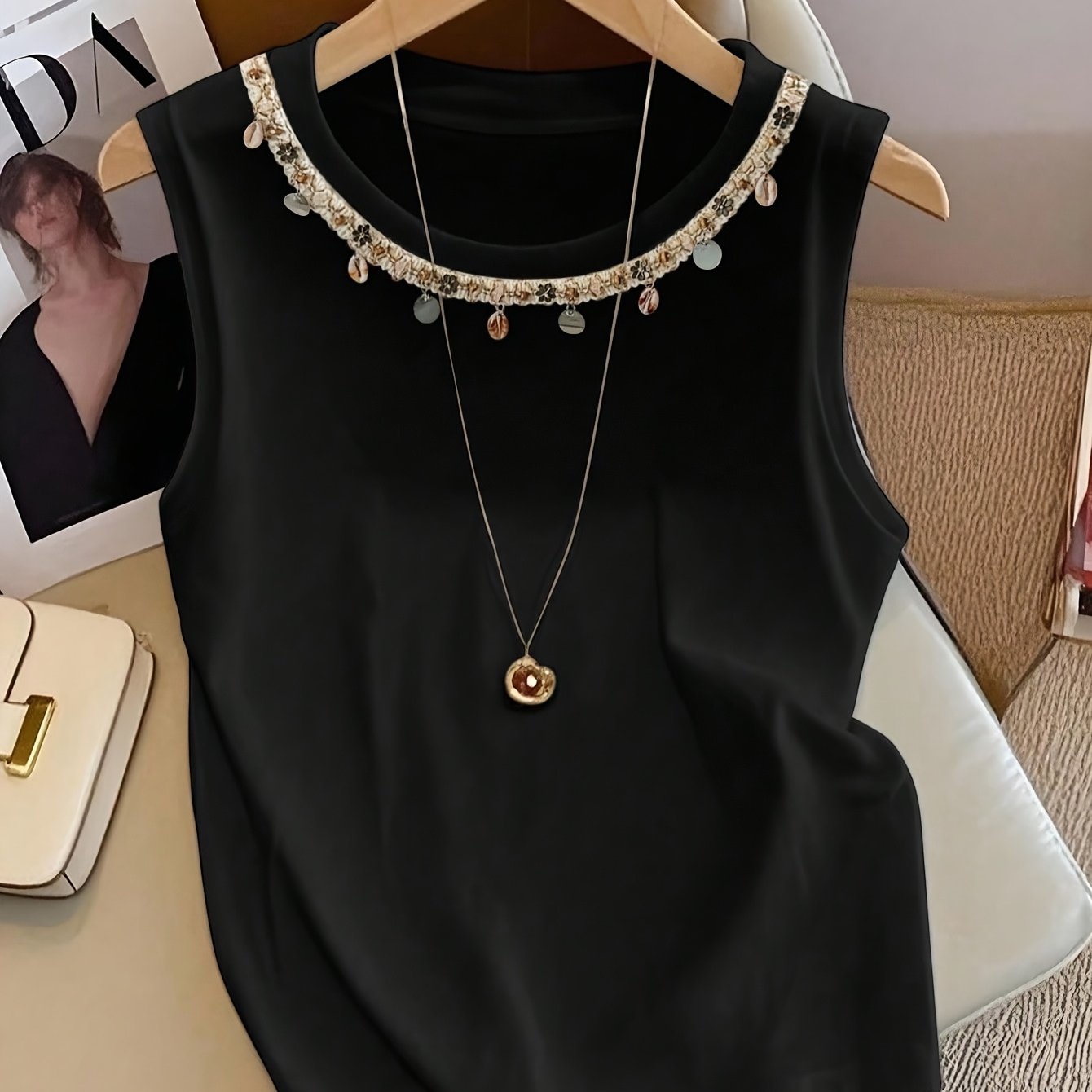 TEMU 여성용 라운드넥 조끼, 간편한 펜던트 포함