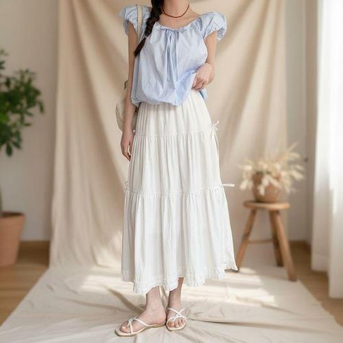 [다잇템]여성 쿨링 티어드 롱플레어 봄여름 스커트