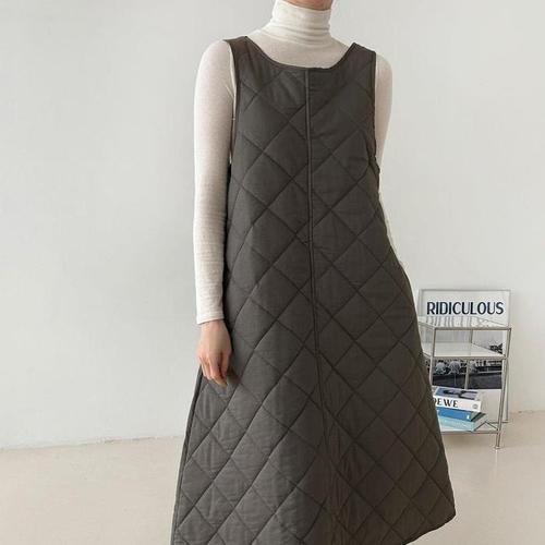 [다잇템]여성 패딩원피스 누빔 퀼팅 에이라인 롱원피스 (11458874A)