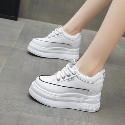 천연가죽 큐빅 스니커즈 3cm 발편한 통굽스니커즈