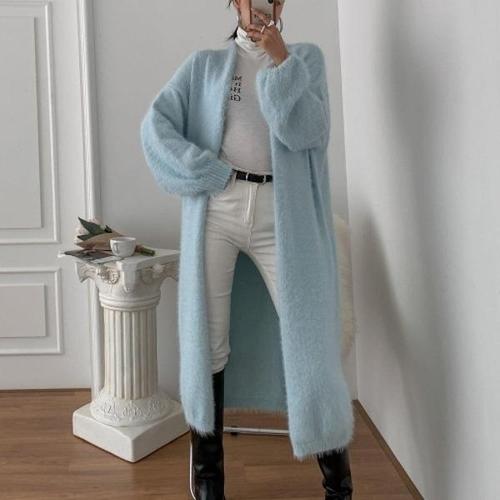 [옷자락][다잇템] 여자 엷은 뽀송 펌킨 깃털 하늘색 롱가디건_15132741_588870