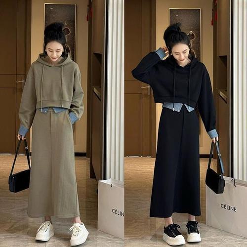 [주식회사 브이와이][JHQRKD7Z_4B]캐주얼 크롭 크롭후드티 후드 밴딩 세트 (24020699A)