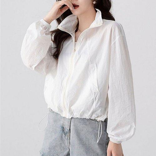 여성 등산 외출 골프 아웃도어 쿨링 원단 햇빛 차단 핑거홀 크롭 바람막이