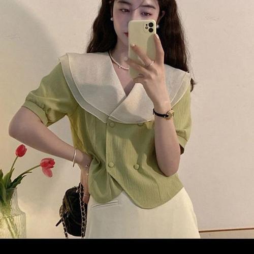 [셀럽하우스]셔츠 YOEK0969 반팔 직장인 오피스 정장 크롭 데일리 라