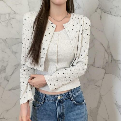 [미라클세븐]여성 봄 여름 통기성 면 크롭 탑 가디건 세트