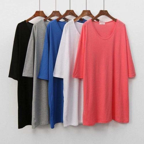 [오너클랜]인기상품 여성용 컬러 유넥 롱 반팔 티셔츠 큰옷 여름용 [WFLINQU_260301]